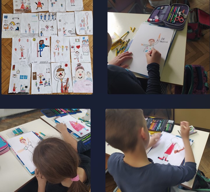 “Klaunovidoktori posjetili su me kad sam bio u bolnici zbog operacije. Prvo sam bio iznenađen, ali bilo mi je drago jer su me zabavili i pomogli mi da zaboravim da me boli i da mi je teško”, uz crtež napisao je Marin, učenik 2. razreda.
