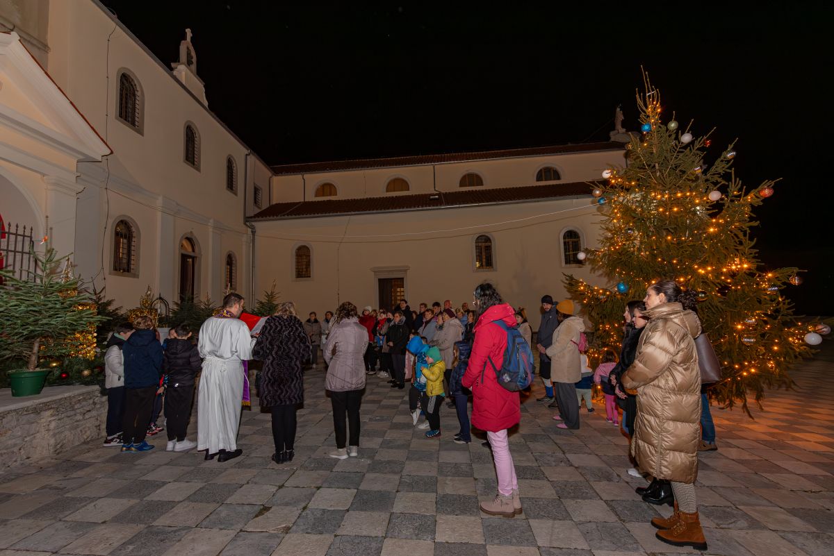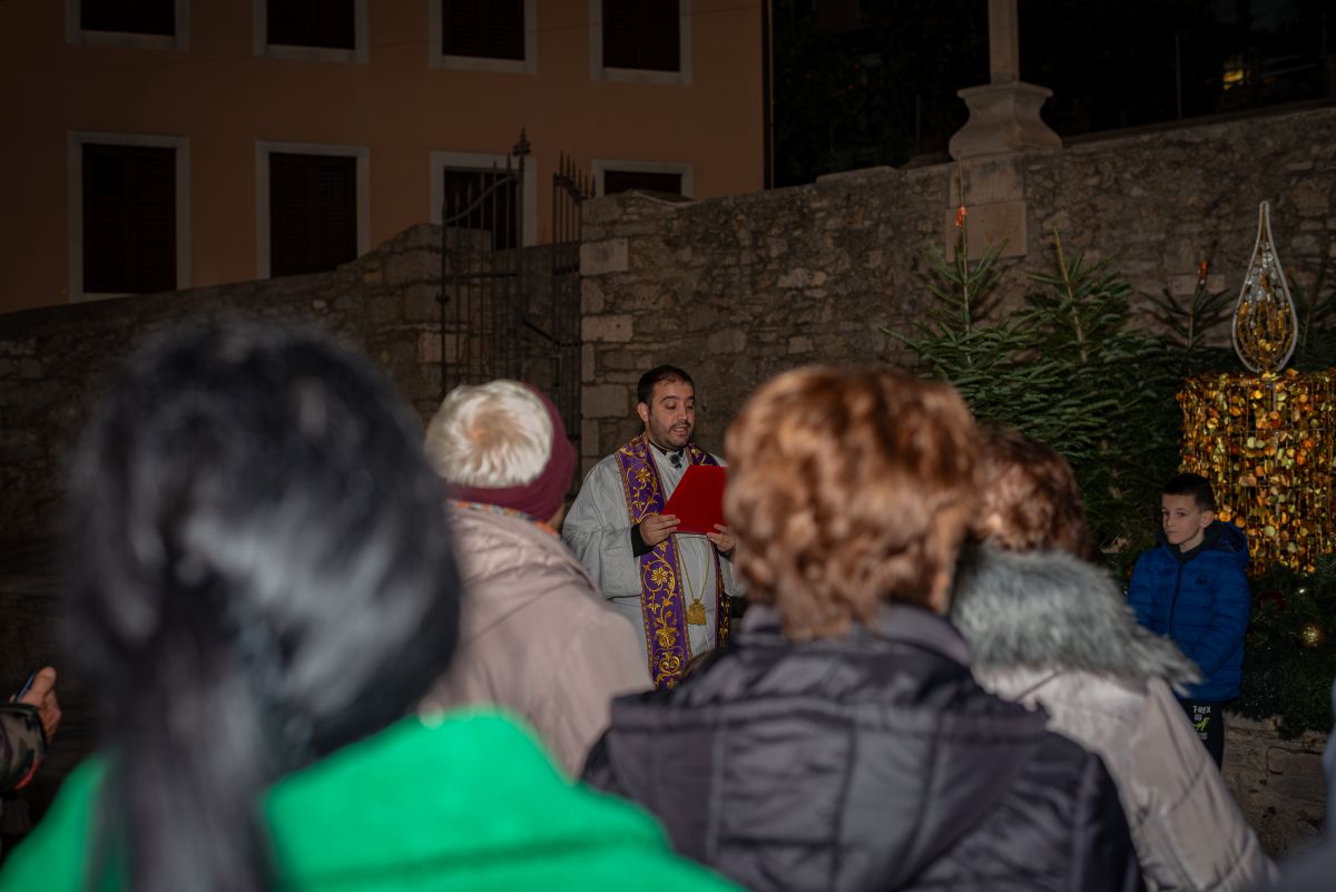Obred paljenja svijeće predvodio je vlč. Andrija Živković, donedavno župni vikar u Malom Lošinju, sada u Dubašnici na Krku, koji je pritom blagoslovio jaslice i okupljene građane.
