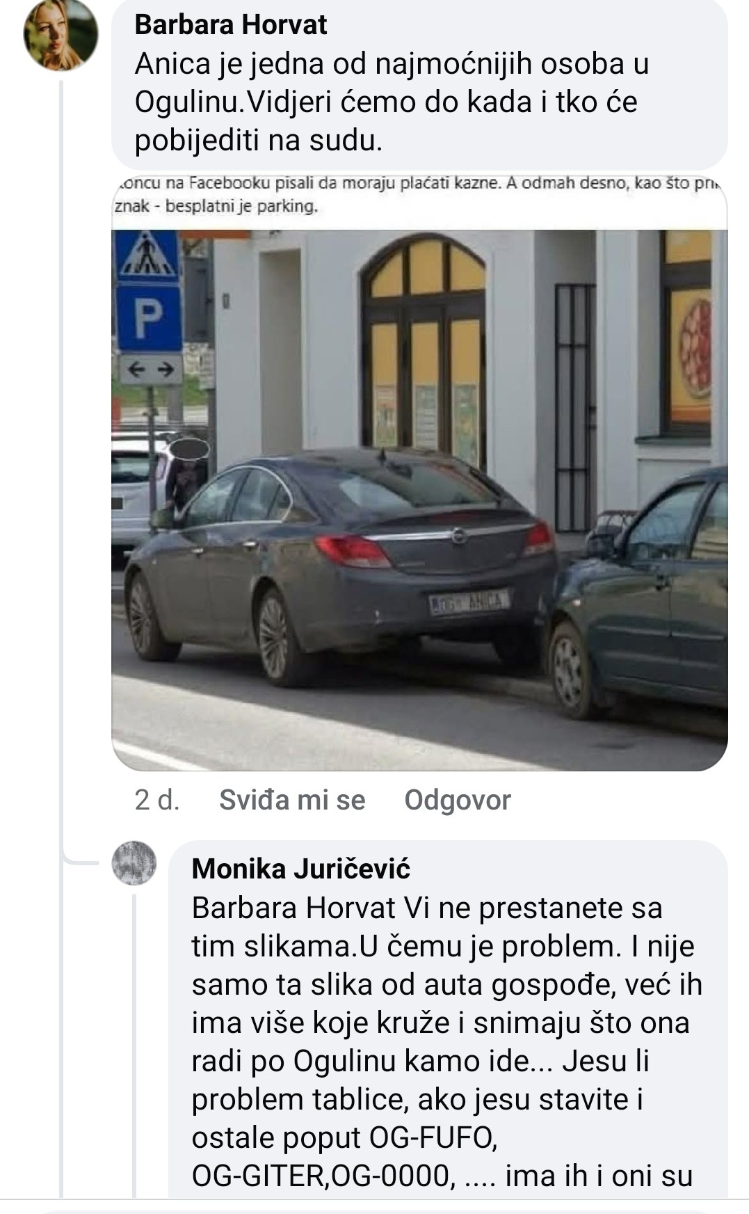 Povod je bila objava fotografije na kojoj se vidi nepropisno parkiran automobil Opel Insignia s personaliziranim registracijskim oznakama “OG Anica“, kojega koristi Anica Pribanić, a za koji se u javnosti tvrdi da je kupljen donacijama namijenjenim psima.