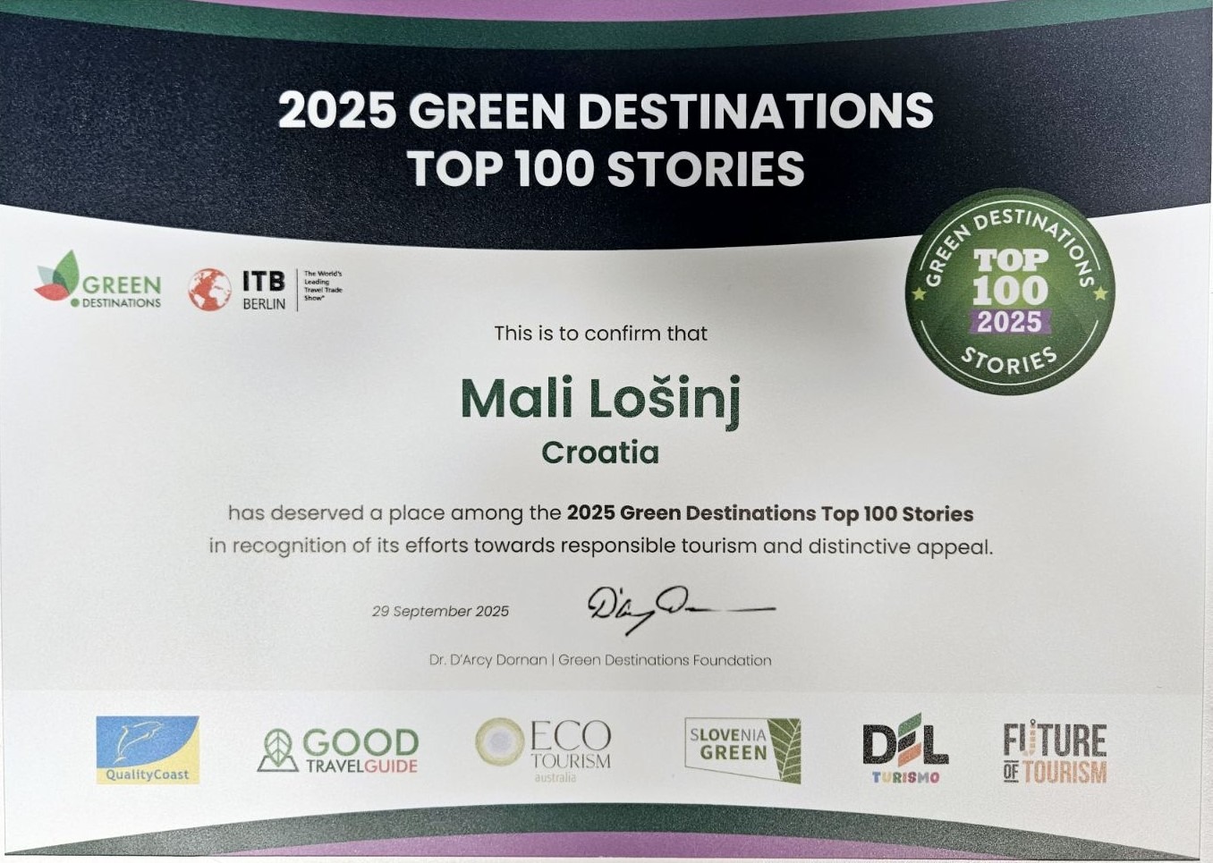 Lošinj – Otok vitalnosti dobitnik je posebnog priznanja “Green Destinations Top 100 Stories” za projekt “Sigurno kampiranje” kampa Čikat (Jadranka kampovi) na ovogodišnjoj konferenciji Green Destinations Global 2025, održanoj od 28. do 30. rujna u francuskom Montpellieru.