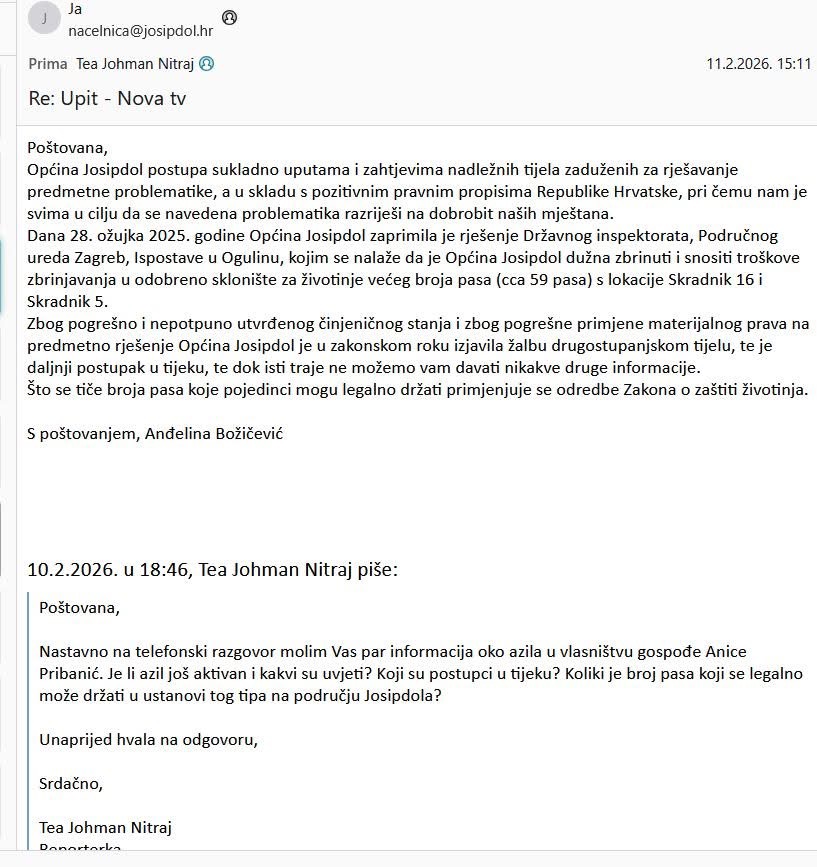 Naglašavam da je Općina Josipdol u više navrata postupala odgovorno te je slučaj u Skradniku prijavljen nadležnim institucijama, uključujući Državni inspektorat, veterinarsku inspekciju i policiju. Postupci su i dalje u tijeku.
