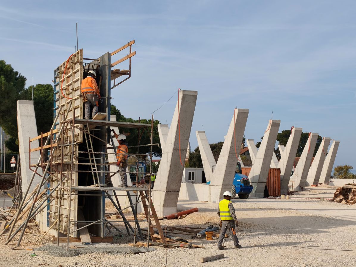 Radovi na izgradnji novog autobusnog kolodvora u Rovinju napreduju u bitnom prema planiranoj dinamici, izvijestio je Grad Rovinj, a ovih dana u tijeku je dovršetak posljednjeg betonskog nosača planiranih natkrivenih perona, čime projekt ulazi u slijedeću fazu izvedbe.